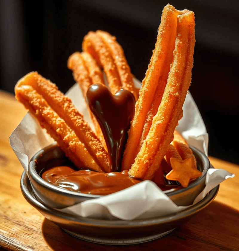 Churros with chocolate dipping sauce are fried dough sticks coated in sugar and served with rich melted chocolate. Simple yet …