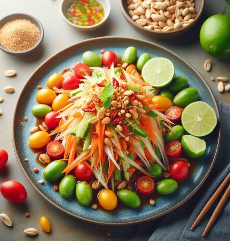Som Tam is a Thai salad of shredded green papaya, chilies, lime and fish sauce, pounded together for a bold, …